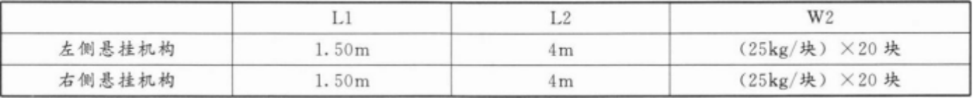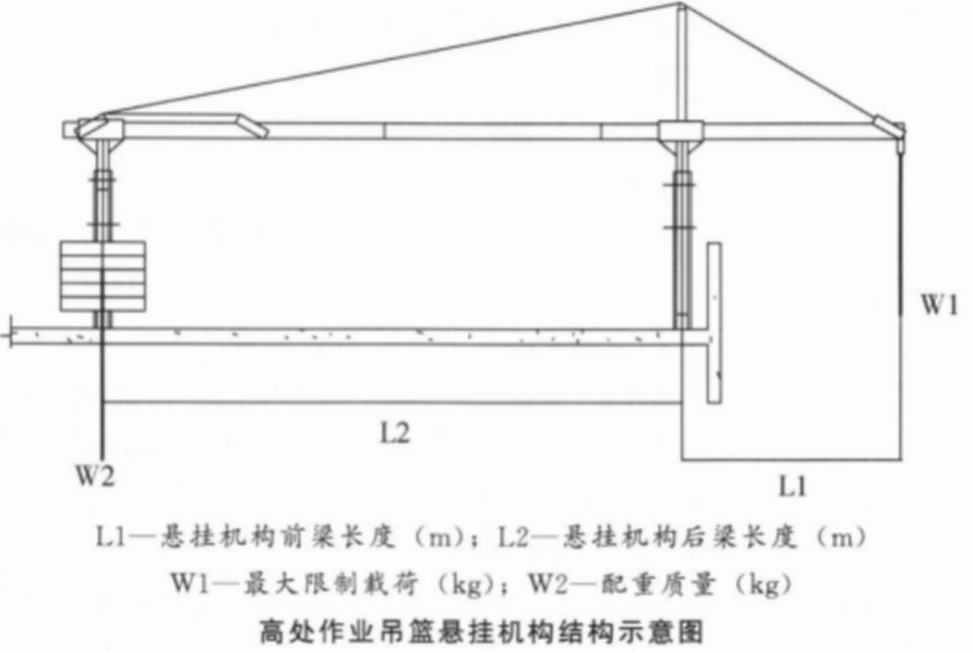 (3) 安装前应对楼顶悬挂机构的安装位置做好防护。(4)配重应安装牢固,重量(W2)应满足说明书要求。