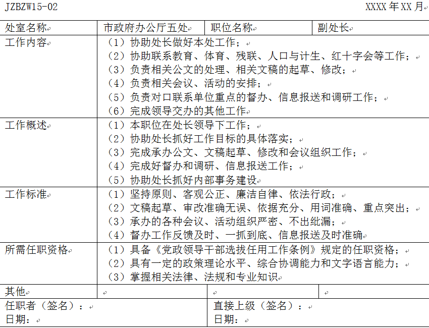 【材料】市政府办公厅职位说明书